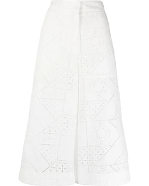 Embroidered Cotton-Blend Culottes - White