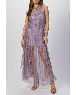 Floral Print Tiered Silk Dress - Purple