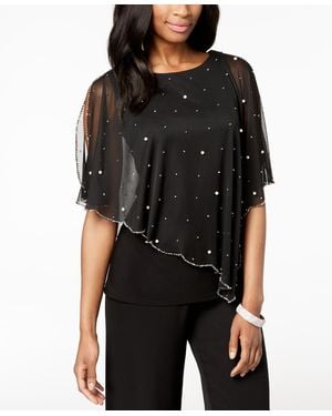 Plus Size Rhinestone-trim Overlay Cape Top - Blue