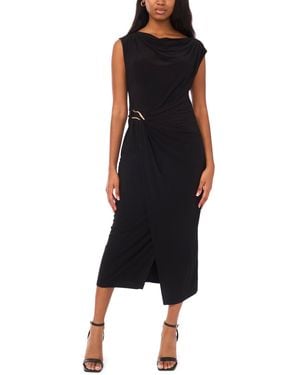 Sleeveless Boat-neck Ponte-knot Wrap Midi Dress - Black