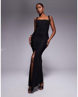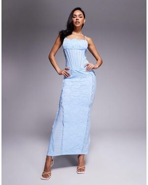 Exclusive Lace Corset Detail Cami Maxi Dress - Blue
