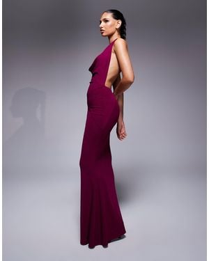 Exclusive Mesh Halterneck Open Back Cowl Neck Maxi Dress - Purple