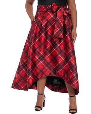 Plus Size High Low Plaid Ballgown Skirt - Red