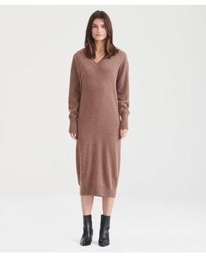 Signature Cashmere V-Neck Dress - Brown