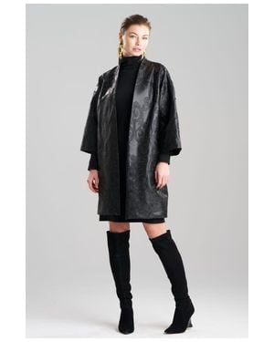 Leticia Embroidered Faux Leather Coat - Black