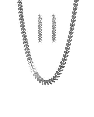 Elara Chevron Necklace & Earring Set Trendy Statement - Gray