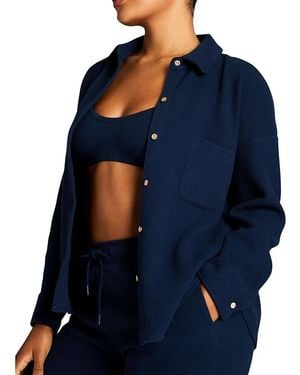 Waffle Knit Shirt Jacket - Blue