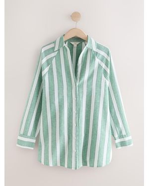 N. Premium 100% Linen Long Sleeve Shirt - Green