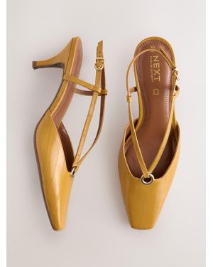 Forever Comfort Leather Hardware Slingback Heels - Natural
