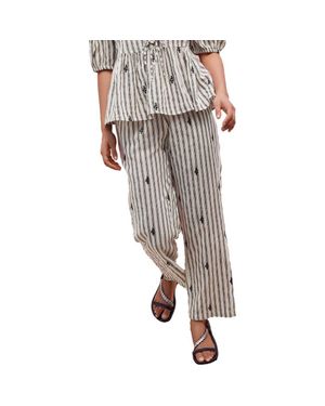 Embroidered Cotton Blend Drawstring Pants - Gray