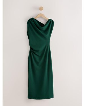 Draped Off The Shoulder Ruched Midi Occasion Dress - Green
