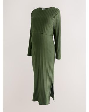 Maternity Long Sleeve Nursing Shelf Dress - Green
