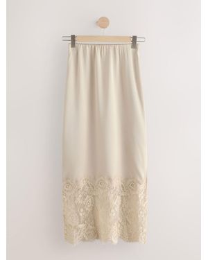 Asymetric Satin Mini Skirt With Lace Trim - Black