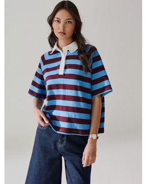 Short Sleeve Striped Rugby Polo Shirt - Blue