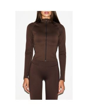 Full Zip Mock Neck Jacket - Brown