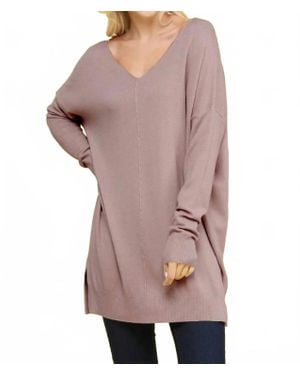V Neck Loose Fit Tunic Length Soft Sweater Top - Pink