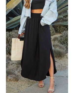 Smocking Waist Maxi Skirt - Black