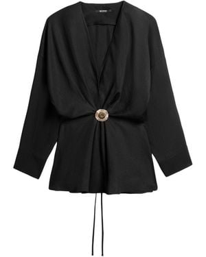 Draped Buckle-Detail Shirt - Black