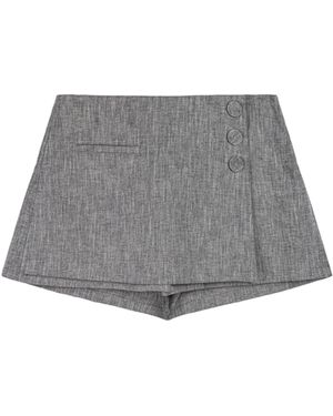 Button Detail Linen Blend Skort - Gray