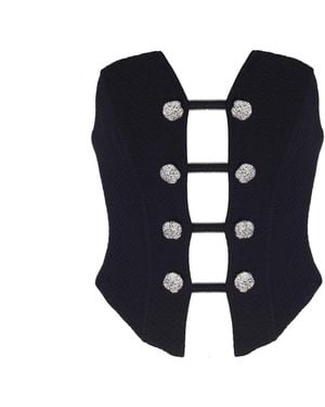 Elizabeth Button-Detail Back-Tie Corset - Blue