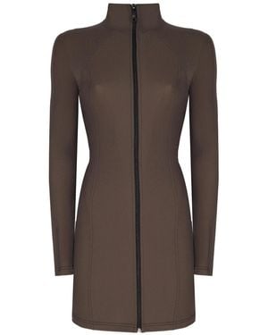 Zip-Up Khaki Mini Dress - Brown