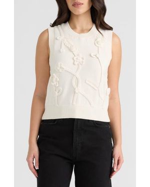 Sleeveless Floral Appliqué Sweater - White