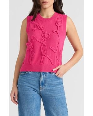 Sleeveless Floral Appliqué Sweater - Red
