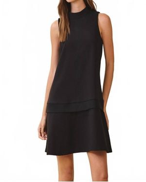 Amalie Sleeveless Mock Neck Layered Hem Shift Dress - Black