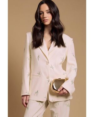 Floral Embroidered Tailored Blazer - Natural