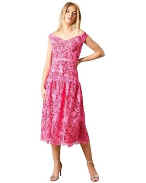 Floral Lace Off The Shoulder Midi Dress - Pink