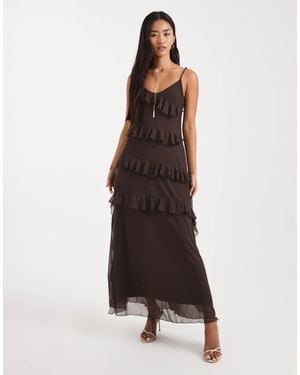 Mesh Ruffle Cami Maxi Dress - Brown