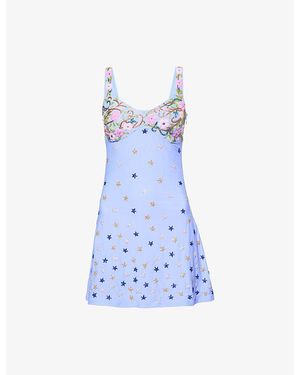 Midnight Star Beaded Mesh Mini Dress - Blue