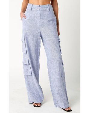 Striped Linen Cargo Pants - Blue