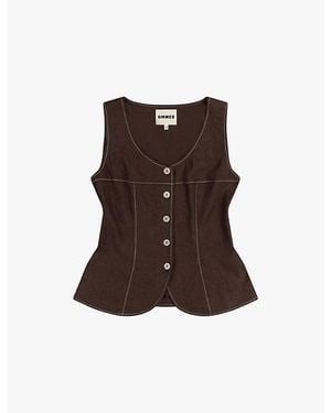 Nicolla Shirred-Bodice Linen-Blend Top - Brown