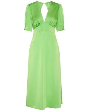 Odette Puff Sleeve Midi V-Neck Dress - Green