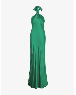 Arles Halterneck Satin Maxi Dress - Green
