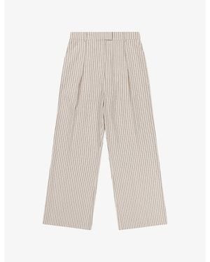 Striped Wide-Leg Linen-Blend Pants - White