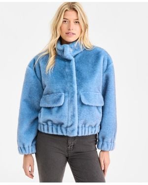 Woven Solid Faux-fur Bomber Jacket - Blue