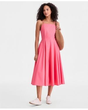 Square-neck Seamed Fit & Flare Midi Dress - Red