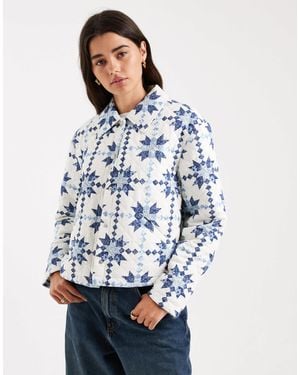 Lightweight Quilted Jacket With Paisley Fairisle - Blue