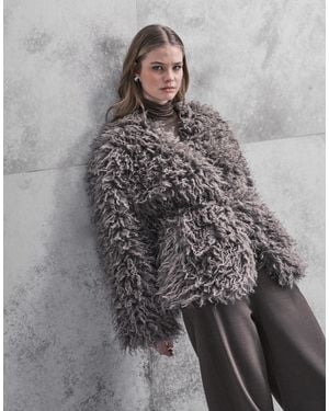 Belt Detail shaggy Jacket - Gray