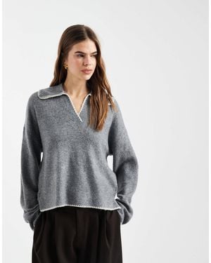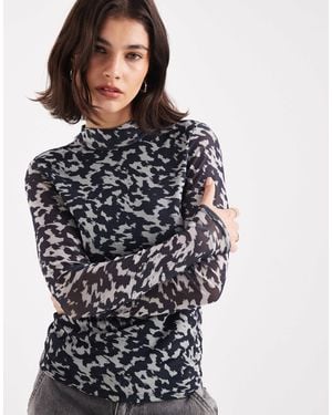 Long Sleeve Rib Top With Silver Button Detail - Brown