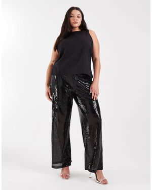 High Waist Pull On Sequin Pants - Black
