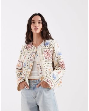 Quilted Jacked With Floral Patchwork - White