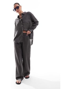 Linen Blend Wide Leg Pants Co-Ord - Black