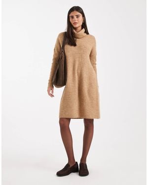 Roll Neck Midi Sweater Dress - Brown