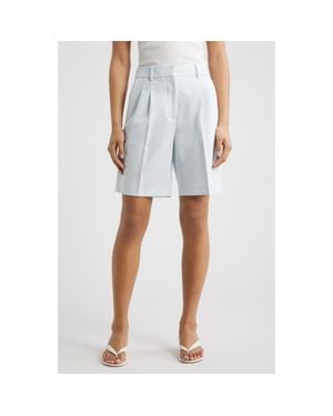 Everyday Pleated Linen Blend Shorts - Blue