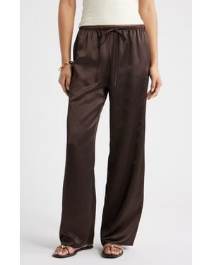 Drawstring Waist Satin Pants - Natural