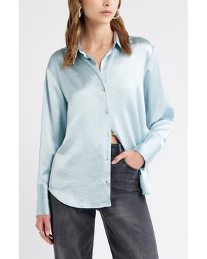 Relaxed Fit Satin Button-Up Shirt - Blue