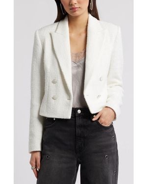 Crop Double Breasted Tweed Blazer - White
